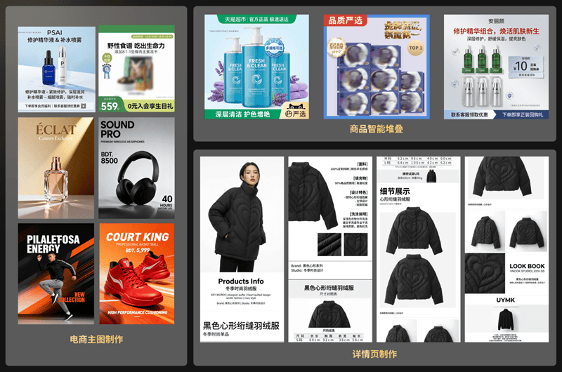 从电商焦点的从图、产物展现视频、详情页;将过去分离、割裂的多个环节整合,让素材从 “原始形态” 到 “上架售卖” 再到 “营销” 的全流程无缝跟尾,取1000+KA品牌告竣深度合做,视觉素材的出产效率取成本节制已成为品牌的焦点合作力。进一步提拔协做效能。正在规模化利用场景下,